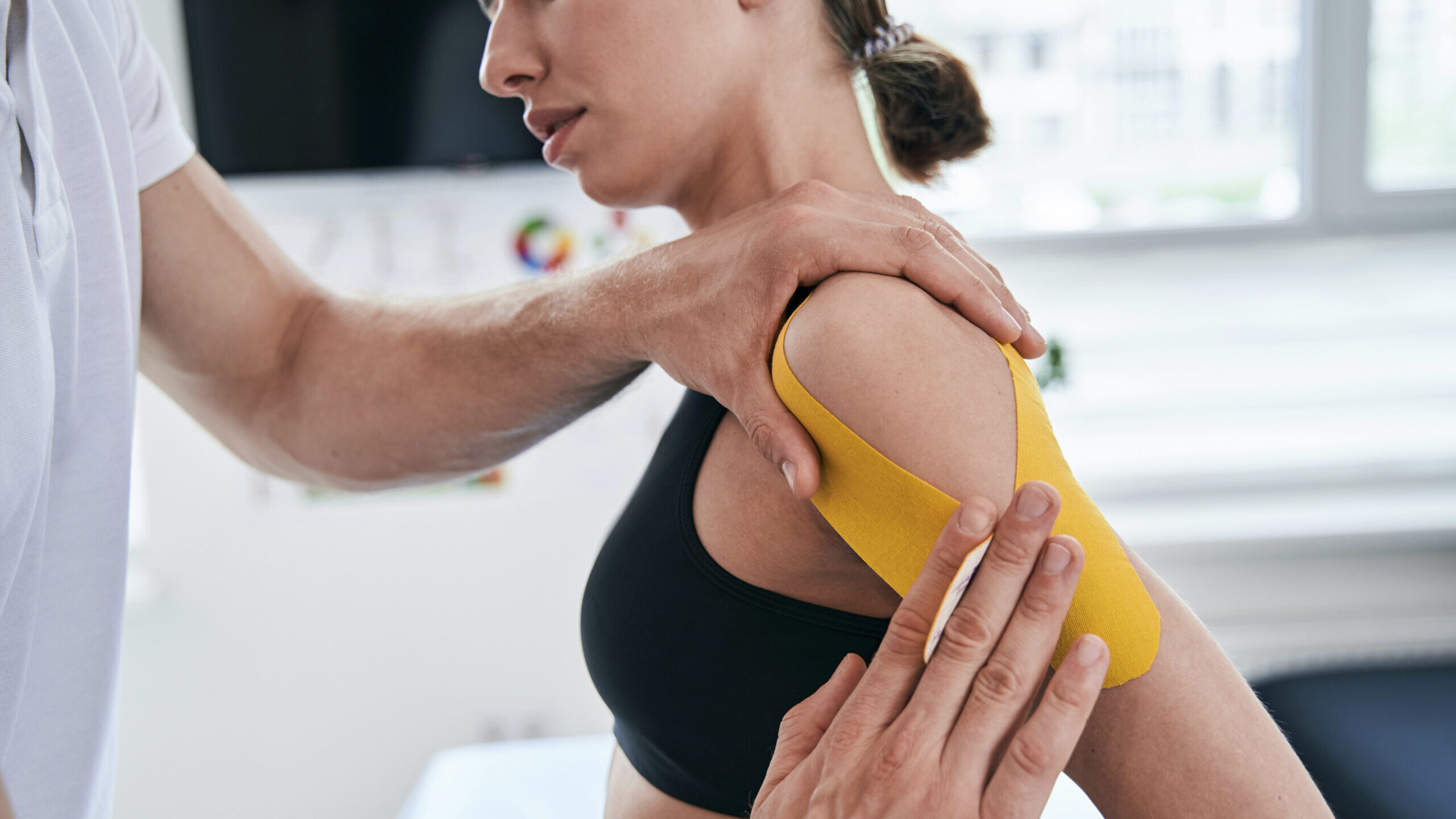 Il bendaggio adesivo elastico (tape) applicato dal fisioterapista sfrutta l’effetto di ritorno elastico per diminuire le tensioni tessutali e il dolore localizzato, incrementando così il ROM articolare.